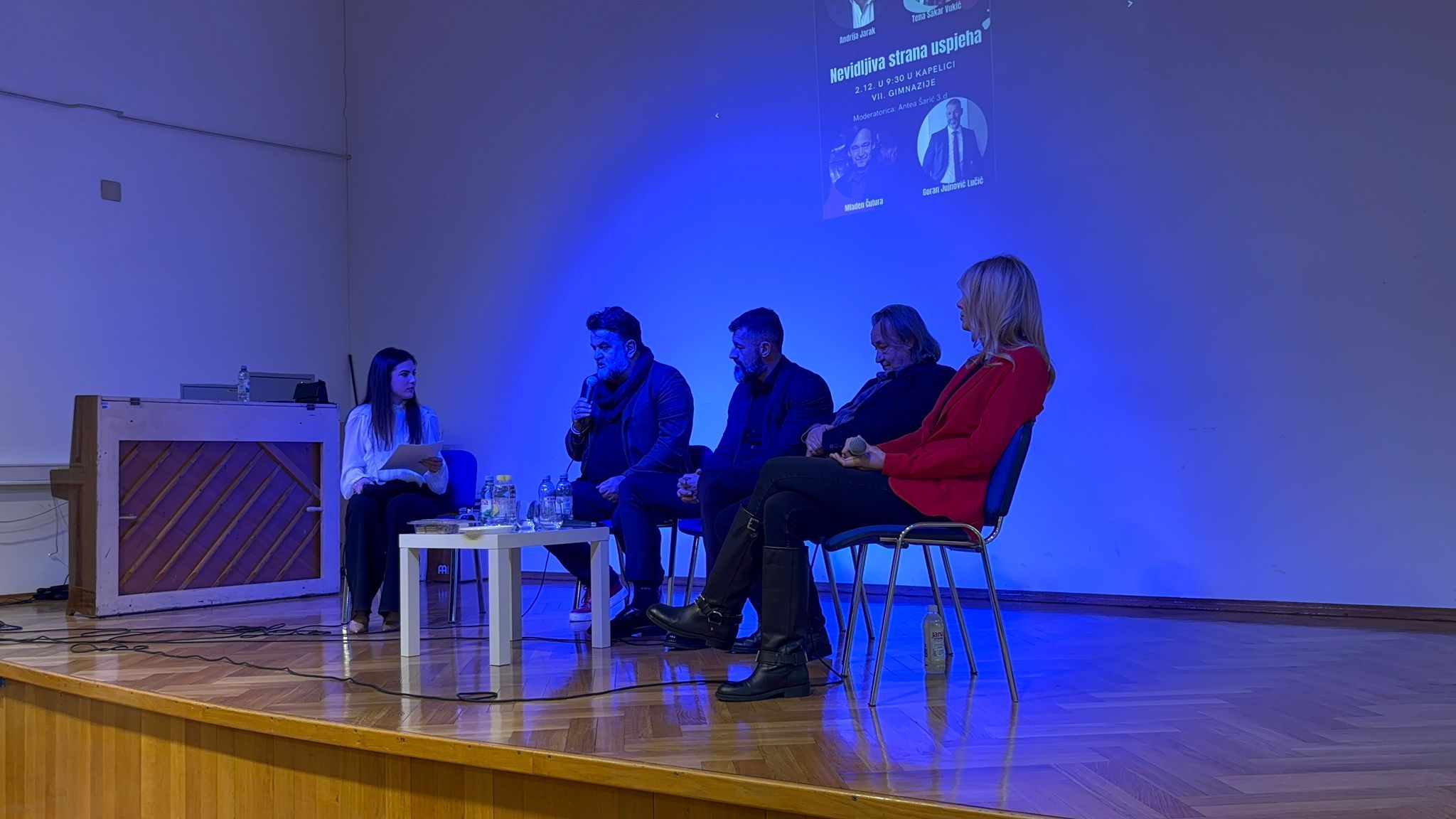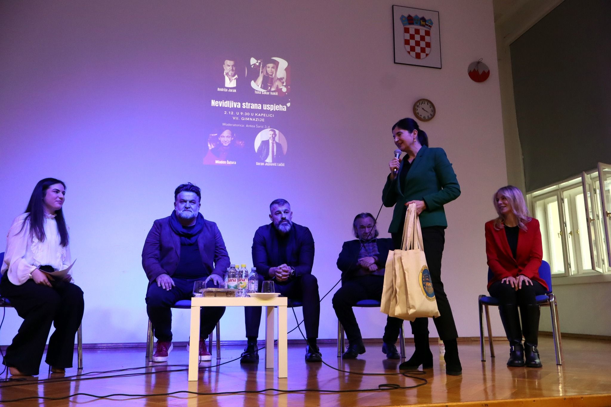 Jučer je u našoj kapelici održan panel „Nevidljiva strana uspjeha“. Uz poticaj i podršku knjižničarke Marije Novokmet, učenica Antea Šarić, 3.d, osmislila je i organizirala projekt te vodila razgovor s gostima. Posjetili su nas novinar Andrija Jarak, odvjetnik Goran Jujnović Lučić, glumac Mladen Čutura i digitalna kreatorica Tena Sakar Vukić.