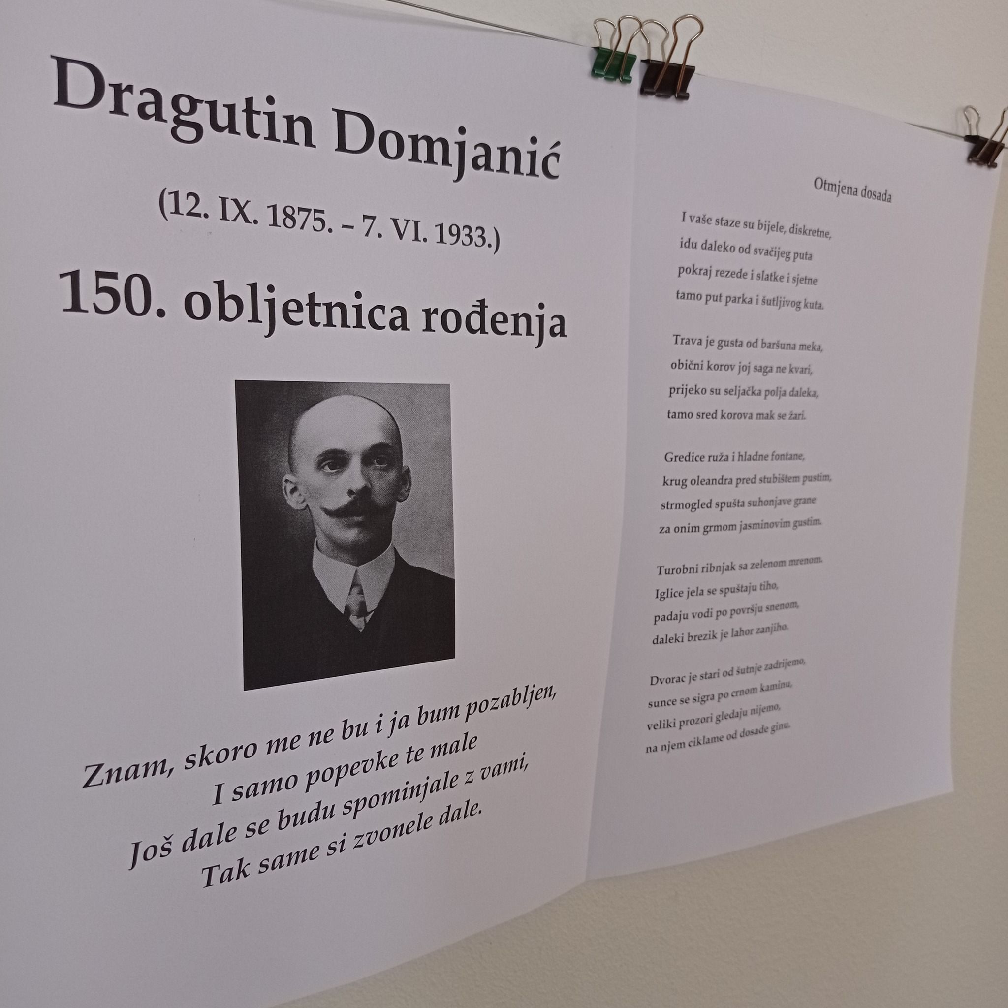 Izložbom knjiga i tekstova pridružili smo se mnogima koji tijekom rujna nisu zaboravili 150. rođendan hrvatskog pjesnika Dragutina Domjanića.