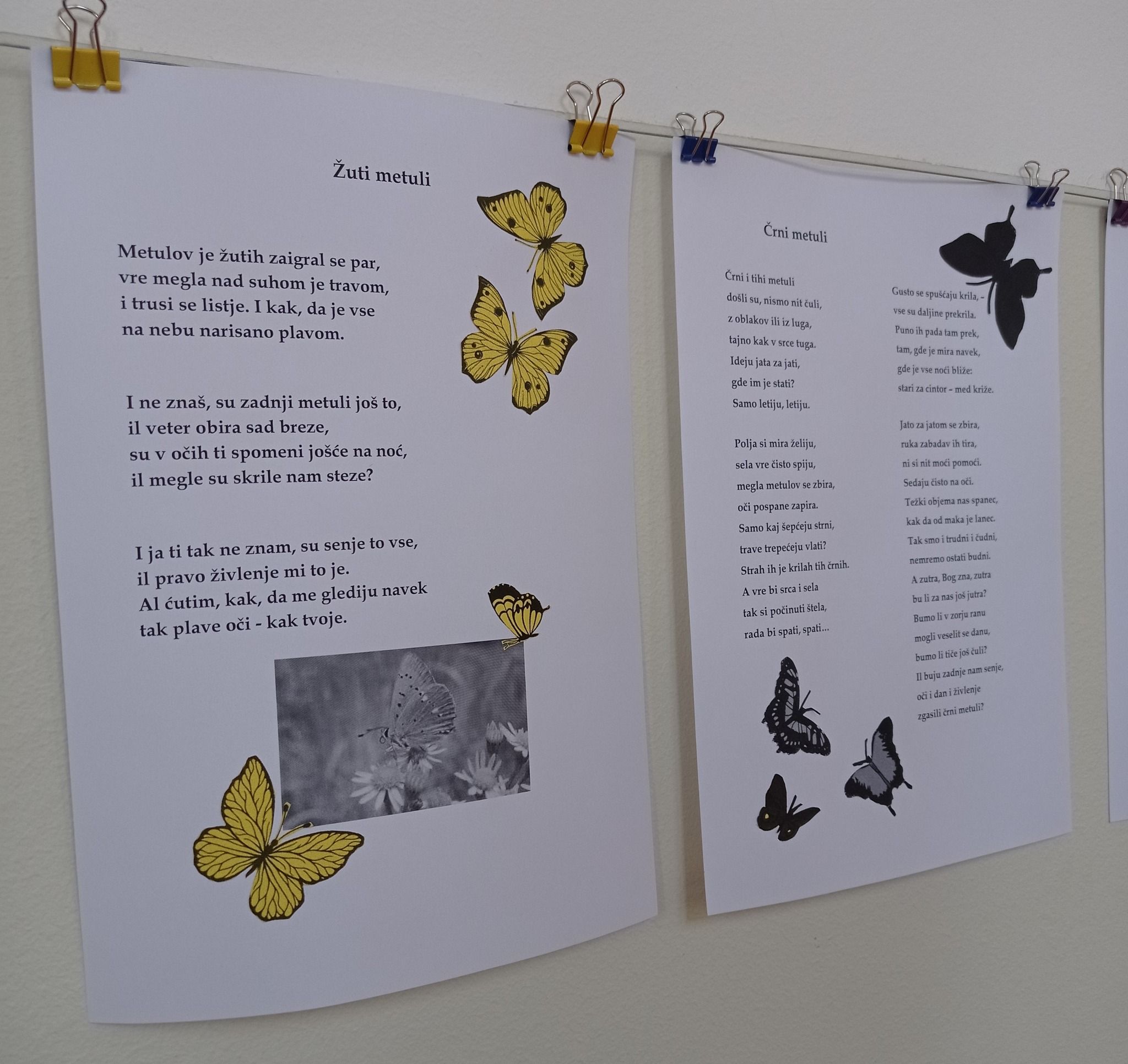 Posjetitelji knjižnice i čitaonice, osobito učenici prvih i drugih razreda, slušali su o njegovu životu te pokoji lijep i melodiozan stih što tiho “diši”, oživljujući spomenak na pjesnika čije popevke “Još dale se budu spominjale z vami, /Tak same si zvonele dale.” Domjanićev rođendan proslavili smo 12. rujna s učenicima 2.c i 2.e: otrgnuli smo zaboravu starinski svijet gitara zaspalih struna, mrkih portreta, drevnih satova, ali i metula (leptira), steza vu rožah te brojne druge motive dragoga mu kraja. Čitajmo Domjanića, čuvajmo mu “ljubljenu, domaću reč”!